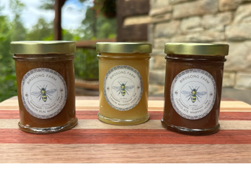 We start with pure raw Birdsong Farm honey, direct from the honey comb. It is never heated or processed, preserving all of the amazing qualities of raw honey. Creamed honey, also known as spun or whipped honey, has been whipped to create a thick, spreadable consistency. We blend granulated raw honey crystals with liquid honey until it reaches the desired creamy texture and then slowly crystallize it in large batches through cooling.